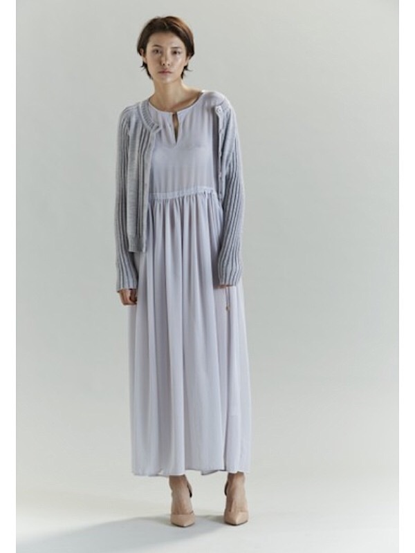 Soft and drapey, the Malina dress is a picture of relaxed elegance. Scooped neckline with fine keyhole detail with gold button closure. Raglan sleeves skim the shoulders and finish just below the elbow. Drawcord waist ties to the left. Sinch in to highlight the waist or leave loose and billowy. Skirt is full and romantic in gathered poly chiffon. Hem falls to the ankle.