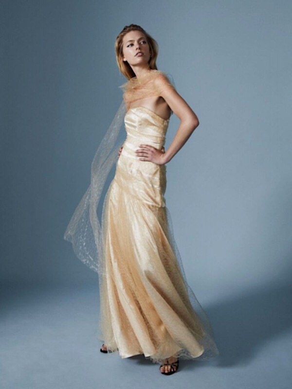The full-length Olympia Gown features a vintage inspired silhouette and has a fully boned strapless bodice with an invisible zipper in the side seam. Delicate Rose tulle covers the lustrous stretch satin to bring out the intricate detail of the lace. The pleats in the fabric across the bodice giving it a shapelier look which supports the hourglass silhouette to accentuate the natural curves of the body.